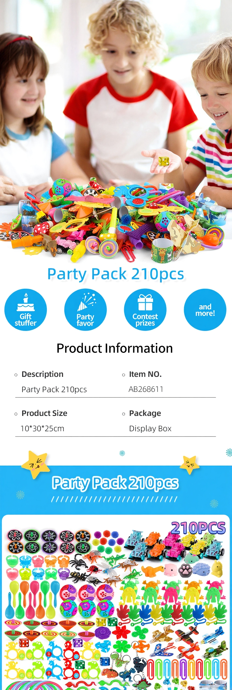 | Description: | 210pcs Kids birthday party toys carnival prizes gifts |