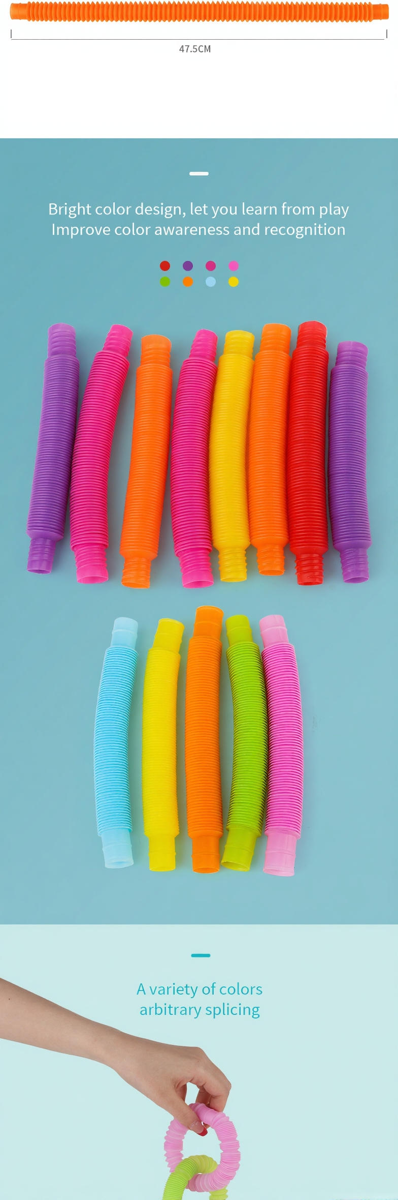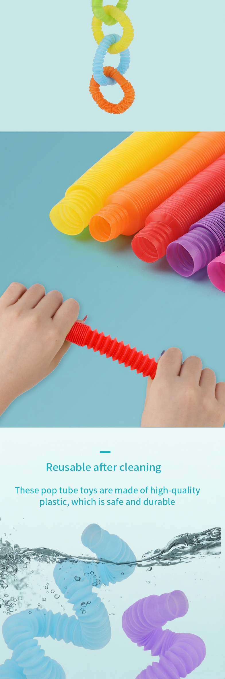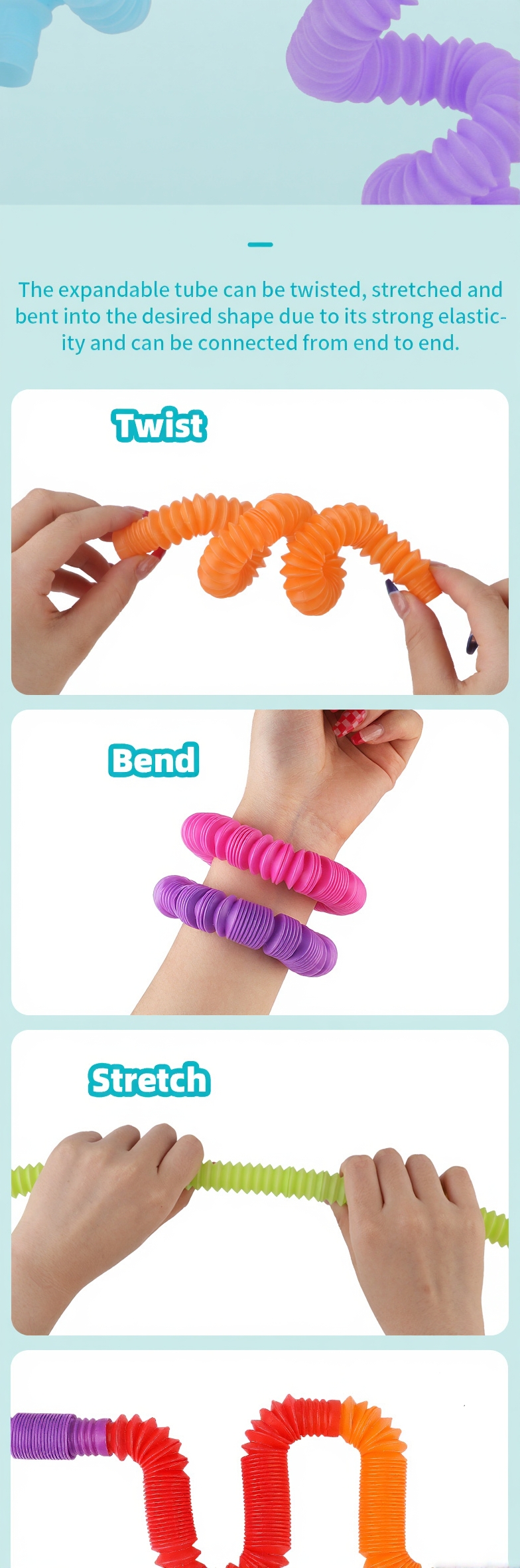 Pop Tubes Toys Hot Sale Novelty Multi-Color Sensory Stress And Anxiety Relief Stretch Tube Kids and Adult Fidgety Toys Pop Tubes